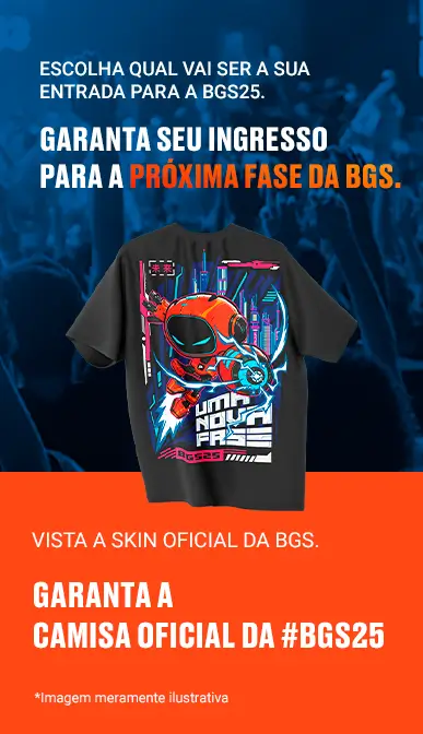 Kit com 1 Camiseta Oficial + 3 Copos + 3 Pares de Meia + 1 Pin + 1 Pôster + 1 Sacochila. E mais: 1 Camiseta Vintage da BGS exclusiva para quem comprar na pré-venda!